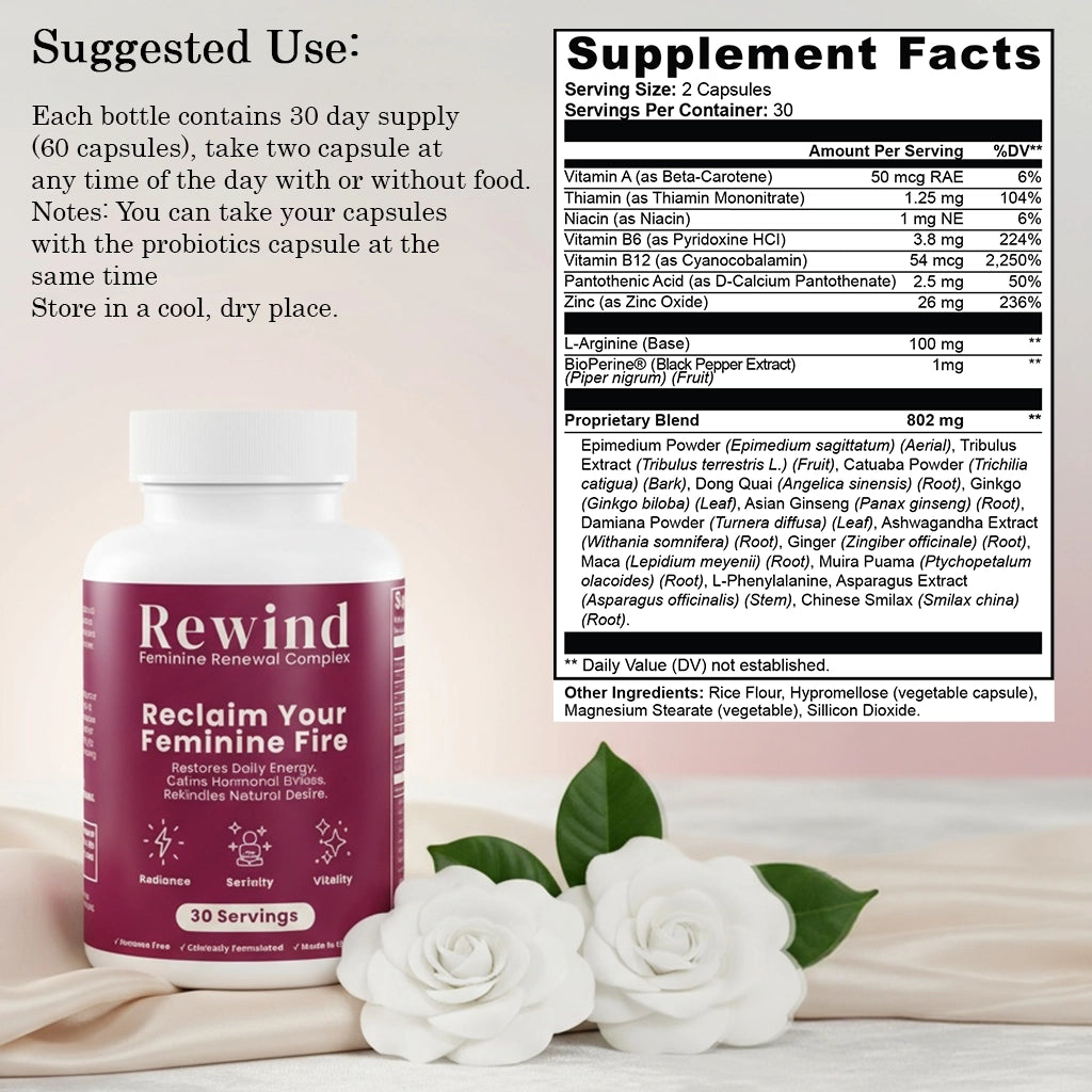 Rewind was formulated by women's health specialists who understood that all these issues are connected—and that rebuilding the physical foundation AND hormonal rhythm simultaneously is the key to lasting transformation.