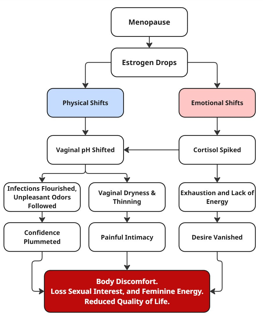 What happens next—in the weeks and months that follow—is a hidden chain reaction that explains why dryness, recurring infections, and lost desire so often arrive together... why they seem to feed off each other... and why treating one symptom never seems to fix the others.